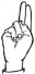 На ћирилици написано РАДНА БИОРАЦ састоји се из 11 слова [?]. Исписано ћириличном једноручном азбуком за глувонеме: